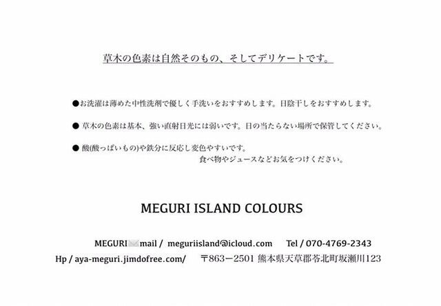 ※草木の色素は基本、強い直射日光には弱いです。日の当たらない場所で保管ください。